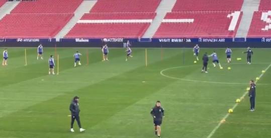 马科斯-略伦特、巴埃纳和希门尼斯仍然缺席训练,与此同时,球队主帅西蒙尼和俱乐部体育总监阿莱马尼在草坪上交谈。